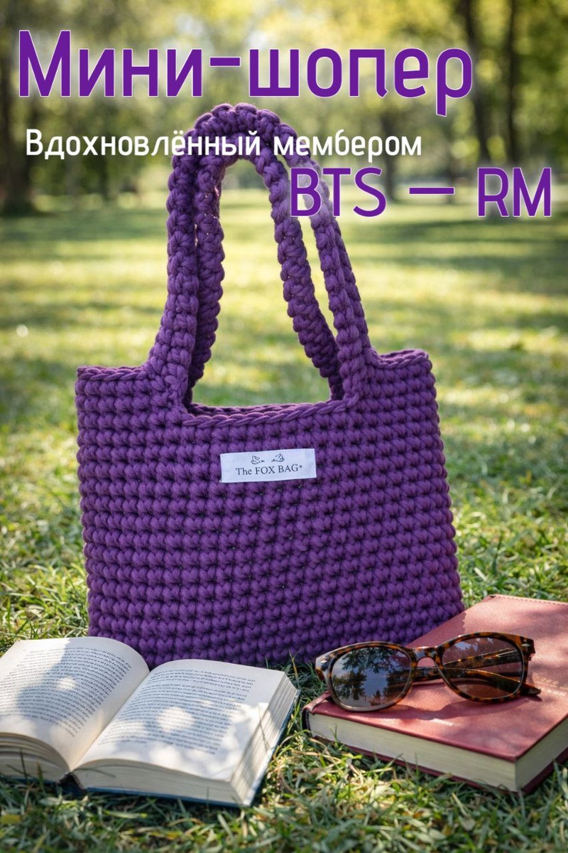 🤍 🤍🤍🤍🤍🤍🤍🤍 Мини-шопер в насыщенном фиолетовом цвете — идеальный аксессуар для поклонников BTS и вдохновлённый стилем RM. ❤️😍 Размеры : 27×23, высота ручки 24см 2800₽ — обычная цена 2200₽ — цена для моих подписчиков Свяжу брелок в подарок на ваш выбор! 💜 Чтобы купить или заказать по индивидуальным размерам - пишите в сообщения канала или лично админу 🤍 #сумки@thefox_bag #BTS