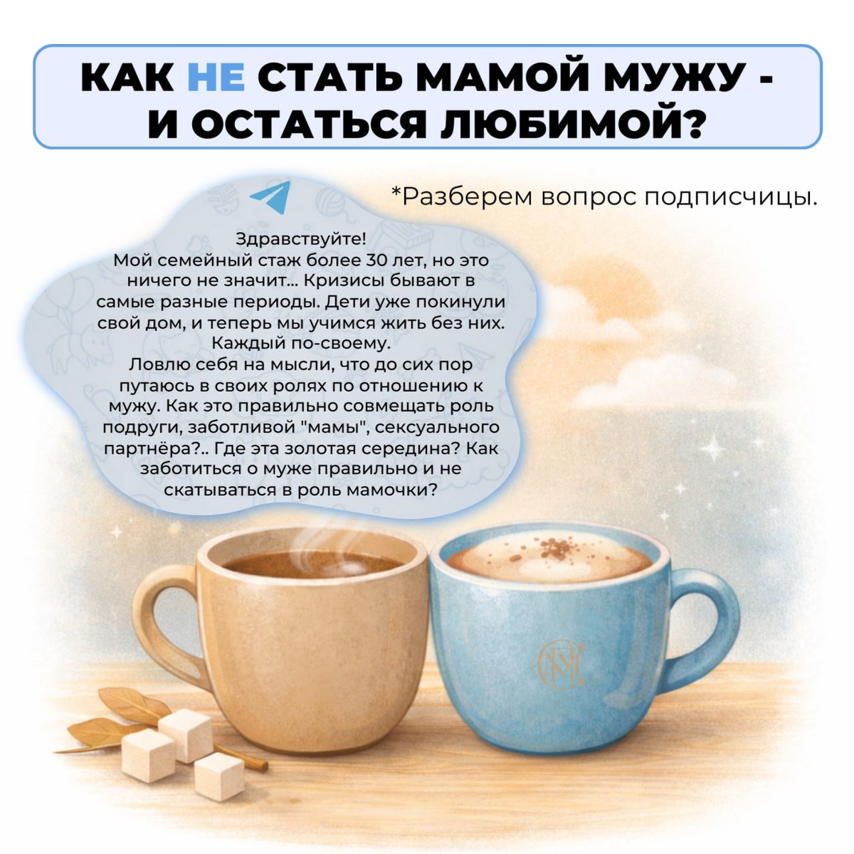 ? Друзья, на прошлой неделе одна из подписчиц написала очень точный вопрос - из него «растут» сразу несколько важных тем про отношения в паре после 30 лет вместе. 📌Ситуация знакомая многим: дети выросли и ушли, семья входит в этап «опустевшего гнезда», и вдруг становится видно то, что раньше перекрывалось бытом и родительскими задачами. Появляется вопрос: «Кто мы теперь друг другу?» Партнёры снова остаются вдвоём - и роли в паре требуют пересборки. ❗️На этой неделе мы разберём темы, которые подняла наша подписчица. Со списком тем, вы можете ознакомиться в комментариях!❗️ Хотите, чтобы мы разобрали вашу ситуацию у нас в канале? Тогда не стесняйтесь - опишите свою историю!⏬💙
