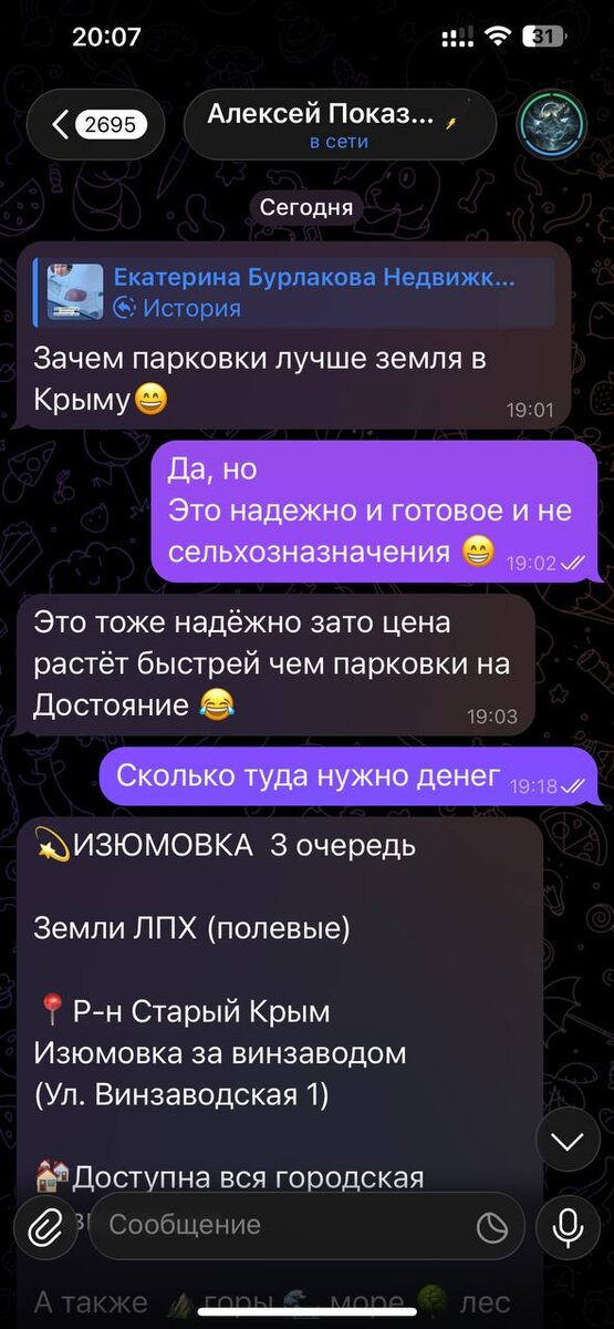 Инвестиция — это там, где понятно, кто и зачем принесёт тебе деньги». М.Гребенюк @grebenukm ПАРКОВКА ЗА 500тр или земля Крыму 6 соток, сельхоз… угу За 15 лет работы в управлении сельского хозяйства, знаю, что чисто законы рулят и главный шериф Когда мне предлагают сельхозземлю за полмиллиона, я всегда задаю один вопрос: Что потом покупатель будет с ней делать? через 3–5 лет? И тут начинается тишина. Потому что закон уже ответил за нас — перевод в ИЖС закрыт, стройки нет, роста нет. Есть только ожидание. Да, говорят: «Эту землю потом купят виноделы, фермеры, аграрии». Но аграрии не покупают эмоциями. Они берут в аренду, объединяют участки, платят процентом с урожая или просто ждут, пока собственник устанет. Шесть соток за полмиллиона — для них не актив, а анекдот. В этой схеме ты не управляешь инвестициями. Ты зависишь от чужих решений, объединений, коопераций и обещаний «давайте посмотрим, как пойдёт». Деньги заморожены, контроль потерян, выход туманный. А теперь парковка за т