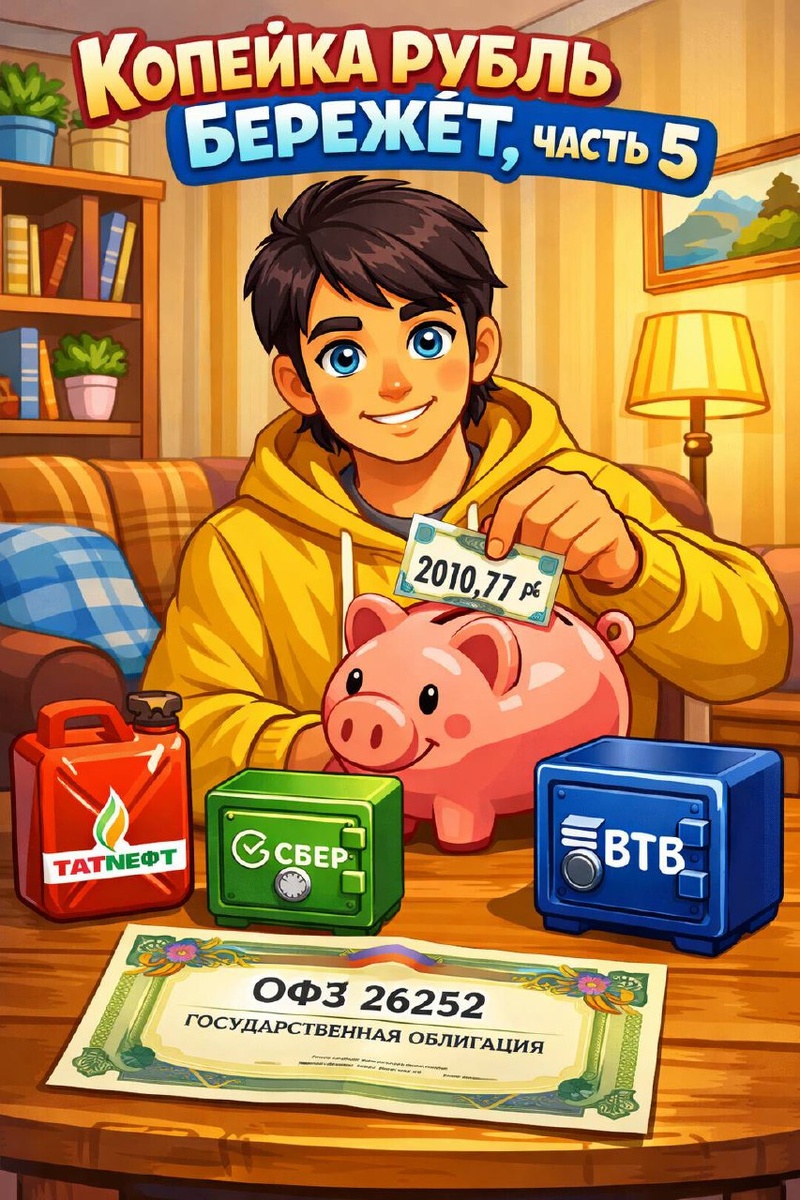 💚 Добрый день, дорогие инвесторы и любители финансовой грамотности! 🚀 С момента выхода прошлой части прошёл ровно месяц, а значит можно снова собирать кэшбэки со всех банков и отправлять их на проект "Копейка рубль бережёт" 📎Напомню суть эксперимента: начиная с сентября этого года, я ежемесячно пополняю этот счёт на сумму полученного кэшбэка. Цель — наглядно показать, как даже небольшие, но регулярные пополнения на длинной дистанции могут превратиться в серьёзную сумму, будь то оплата связи, покупка нового гаджета или чего-то большего. ▶️ Ознакомиться с прошлой частью можете здесь 📌 В этот раз кэшбэк снова побил рекорд и составил 2 010,77 рублей. Получилось использовать несколько раз вкусные кэшбэки на заправке и еде + новогодние праздники и траты дали о себе знать. После пополнения счёта, я решил в этот раз не покупать фонды, и переключился на акции и облигации: 🟢 Акции: ⛽️ Татнефть АП 1 шт - даже при небольшом счёте стараюсь диверсифицировать портфель, в этот раз выбор пал