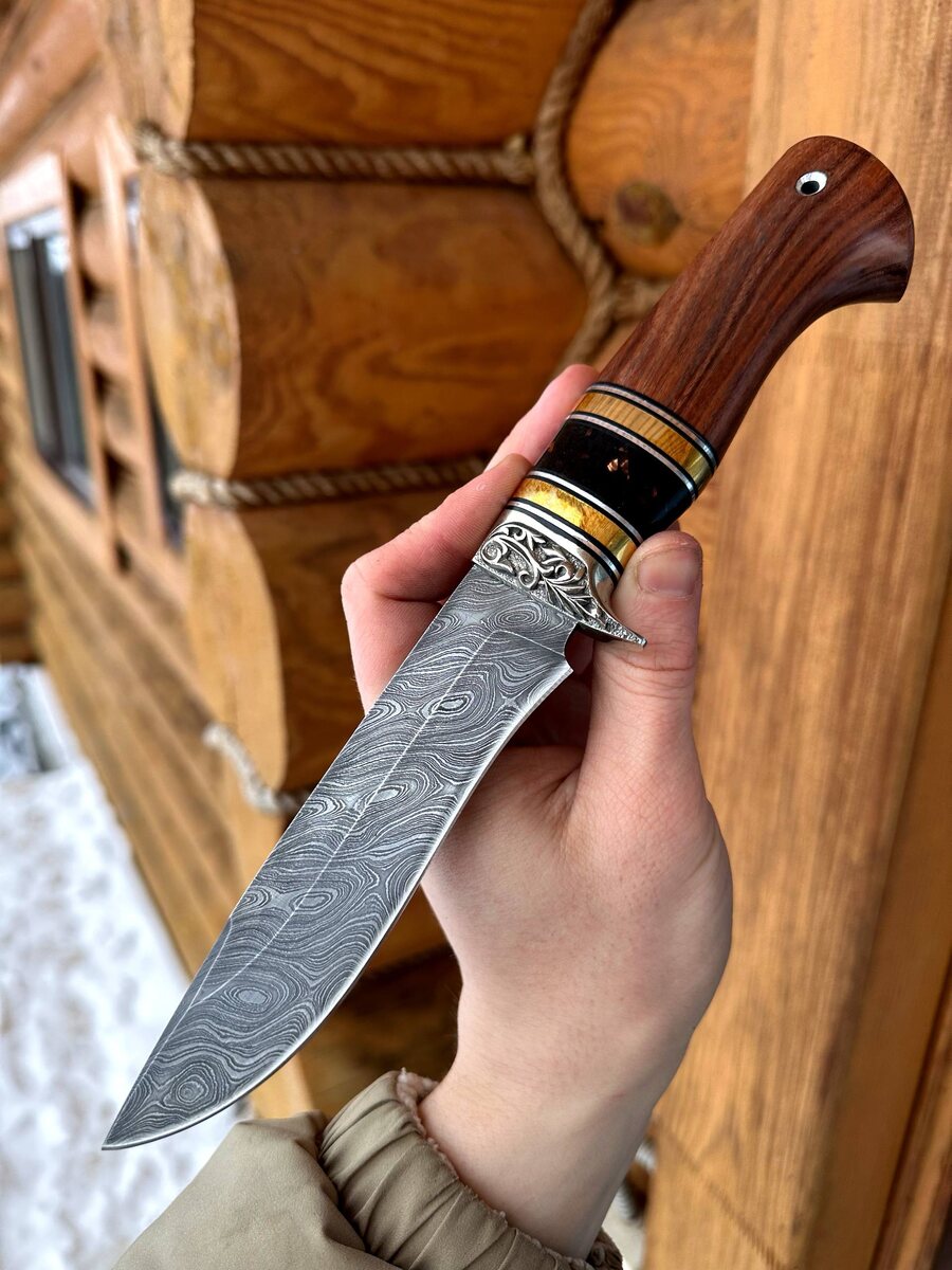 🔥 🗡 Варан — ваш надёжный помощник в охоте, на природе и в коллекции. - Клинок: дамасская сталь, 950 слоёв, твёрдость HRC 62 — *отличная режущая способность и прочность* - Рукоять: роскошное сочетание палисандра, чёрного граба и мельхиора — *удобно лежит в руке, эффектно выглядит* - Ножны: натуральная кожа в комплекте - *Можем изготовить премиальные формованные ножны из кожи растительного дубления (+ 8000 руб.)* 💰 Цена: 12.056 ₽ 🔥 Цена со скидкой: 10.236 ₽ *Арт.: 10765-1* Кому подойдёт? Охотнику, рыбаку, туристу, коллекционеру и тем, кто ценит надёжность и красоту в каждом изделии. 📲 Для заказа: @Nazarklinokbot +7 910 134-38-31 (WhatsApp, Viber) #Ножи #РучнаяРабота #ДамасскаяСталь #Охота #Подарок #КузницаНазарова