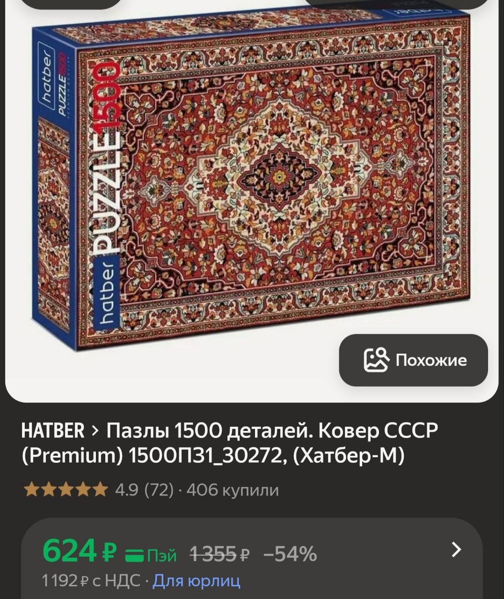 Ковер СССР (Premium) 1500ПЗ1_30272, (Хатбер-М) - 624р (я.пэй) ℹ️Что может быть лучше подарка? Подарок который принесёт боль и страдания 😂 1500 деталей ковра вашей бабушки ❤️ ➡️Получить карту Пэй ➡️Подписаться на Дискаон
