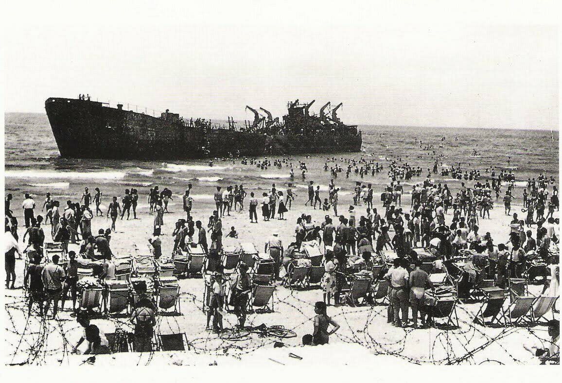 Десантный корабль «Альталена» был разработан для высадки танков в Нормандии, но по разным причинам «День Д» он застать не успел. Так что после завершения Второй Мировой его продали «Иргун» — одной из военных организаций молодого Израиля. Корабль, заполненный оружием и боеприпасами, прибыл к берегам Тель-Авива в июне 1948 года — аккурат в момент перерыва в арабо-израильской войне. Разгружать его было запрещено резолюцией ООН, да и сама ситуация намекала на близость военного мятежа — на борту находились бойцы «Иргун», у которых были свои планы на груз и сложные отношения с лидером Израиля Давидом Бен-Гурионом. Ситуация накалилась. После непродолжительных хаотических интриг и пары перестрелок, «Альталена» села на мель напротив отеля «Кэте Дан», где, по иронии, проживали журналисты и послы, наблюдавшие за войной. Собственно они и запечатлены на фотографии с шахматной партией. Опасаясь, что огромное количество винтовок окажется в руках его политических противников — Бен-Гурион отдал тяжелый