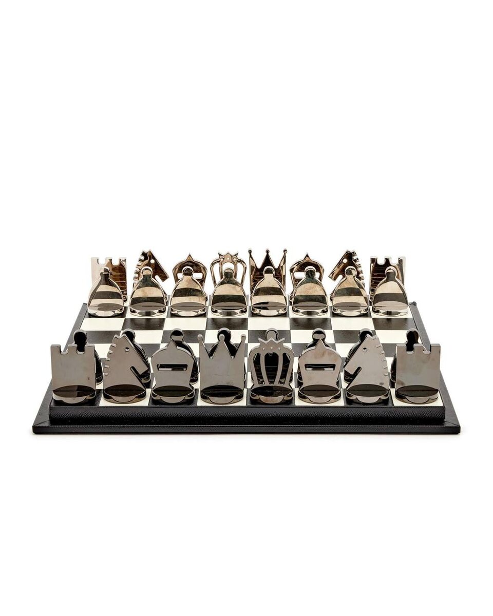 Поиски шахматных наборов среди релизов главных мировых брендов — это особенное развлечение. Все они рано или поздно обратили своё внимание на игры. И все они ставили во главу угла эстетику, игнорируя практическую сторону вопроса. В случае с новогодним набором от Prada — в основу легли металлические фигурки и сафьяновая коробочка. Держать такие фигуры не слишком удобно, а кроме того, они крайне маркие. Но посмотрите как здорово пешки заслоняют второй ряд. Есть в этом визуале нечто очень телесное и театральное, недоступное объемным фигуркам из древесины, не так ли? Стоимость набора — в районе полумиллиона рублей.