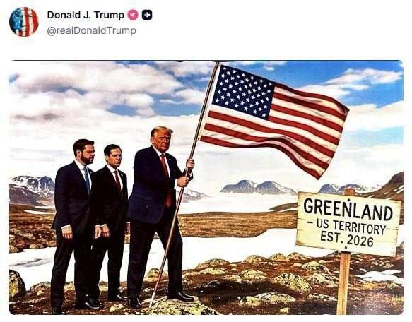 : «Гренландия. Территория США с 2026 года» ⏩ P.S. Оставайтесь с нами и будьте в курсе всего самого интересного! 🔷Подпишись на канал https://dzen.ru/id/63d7a34be120020aa9307269 #новости #мир #общество