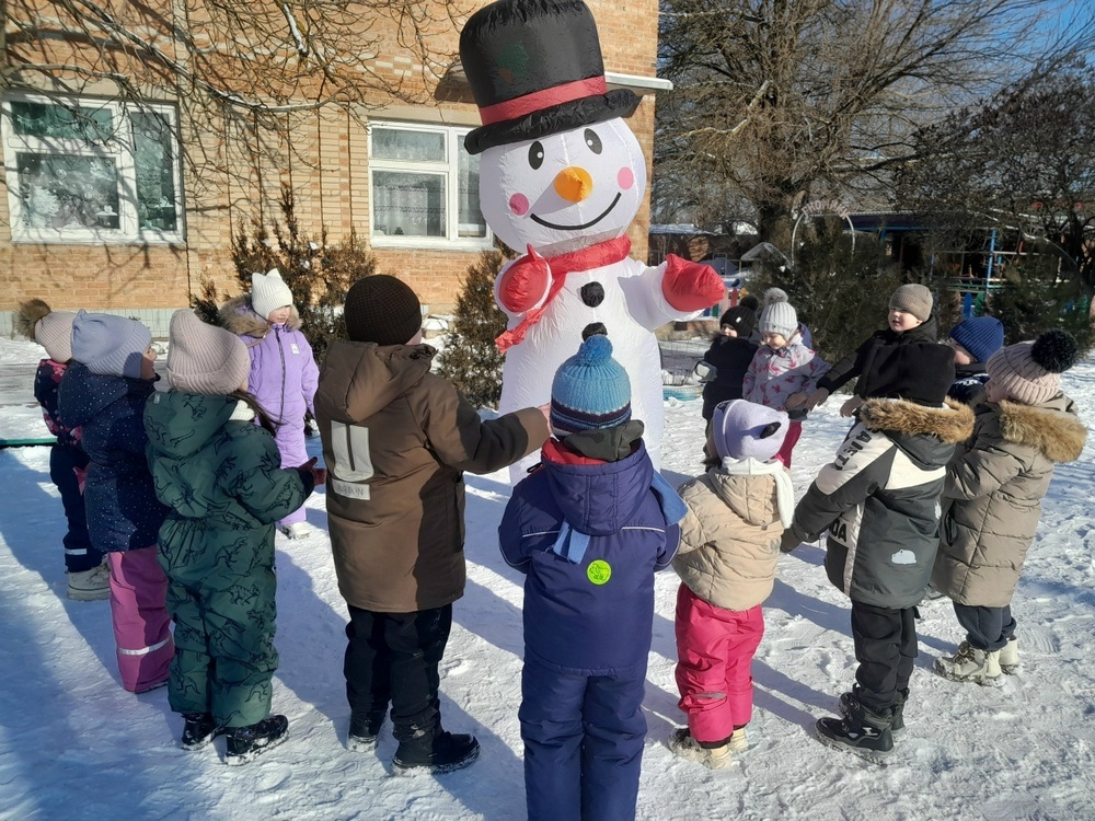В городском детском саду «Сказка» маленькие воспитанники встречали Снеговика. Детишки из самой младшей группы развлекались со Снеговиком, участвуя в активных играх, развивающих ловкость и находчивость. Ребята из средней группы обнаружили забавное сходство: оказывается, цифры 1 и 8, расположенные рядом, удивительно напоминают снеговика с метлой. Неудивительно, ведь январь – идеальное время для создания снежных скульптур. Малыши решили оригинально отпраздновать это радостное событие, проявив творчество: вдохновленные снегом, они смастерили целую выставку снеговиков в технике аппликации. Из рассказов воспитателей дети узнали занимательные факты. Оказывается, в давние времена снеговиков почитали как значимых духов зимнего периода. А в наши дни существуют даже музеи по всему миру, посвященные этим снежным созданиям. Ребята из старшей группы смастерили из бумаги крошечных снеговичков, чтобы преподнести их имениннику-Снеговику, весело кружились с ним в хороводе, произносили теплые слова и доб