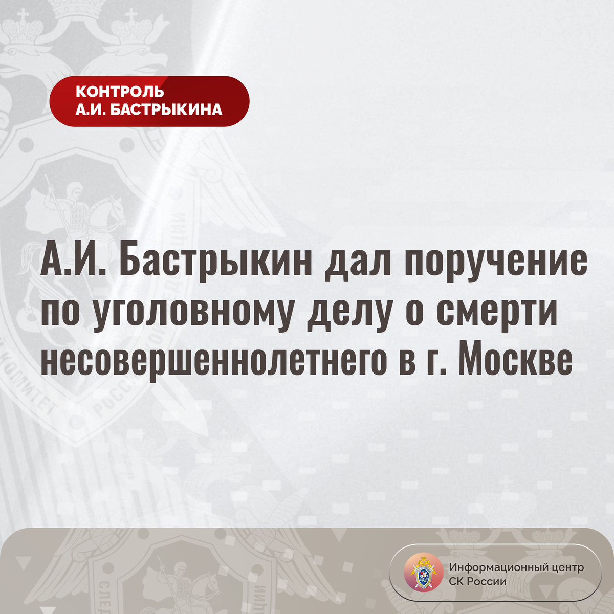 А.И. Бастрыкин дал поручение по уголовному делу о смерти несовершеннолетнего в г. Москве