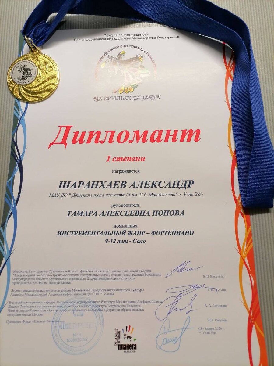 » 🌟Протасова Арина стала дипломантом 1 степени в номинации «Вокал академический». Её подготовку осуществляла руководитель Цыденова Д. Б., концертмейстер — Яковлева Л. Г. 🌟Шаранхаев Александр также стал дипломантом 1 степени в номинации «Инструментальный жанр — фортепиано». Руководитель — Попова Т. А. 🌸Желаем им дальнейших творческих побед и новых достижений!