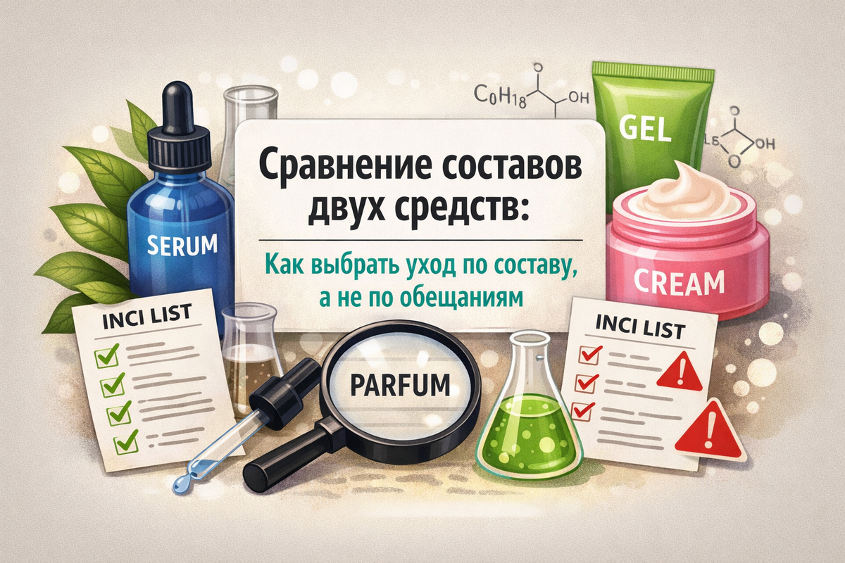 Ниже — простой способ сравнить 2 продукта по составу и выбрать более подходящий под вашу кожу и задачу.