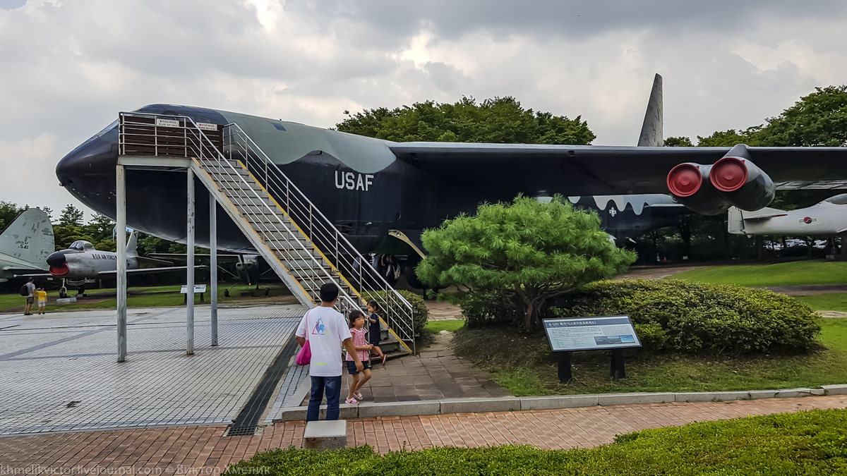 За пределами Соединенных Штатов Америки в авиационных музеях установлено всего три самолета Boeing B-52 Stratofortress. На крыше ангара в австралийском Дарвине даже так и написано: дом В-52. Второй бомбардировщик находится в Имперском авиационном музее английском Даксфорде. Третий же, Boeing B-52D Stratofortress, который служил в 4258-м стратегическом крыле на базе Утапао в Таиланде во время войны во Вьетнаме и в 96-м бомбардировочном крыле на авиабазе Дайс в Техасе, арендован Военным Мемориалом Кореи. Boeing B-52 Stratofortress (Стратосферная крепость) — американский стратегический бомбардировщик, стоящий на вооружении ВВС США с 1955 года. Этот самолёт пришёл на смену B-36. На дозвуковой скорости на высотах до 15 километров он способен нести разные виды оружия, в том числе ядерное. Основная задача, для которой он разрабатывался — доставить две термоядерные бомбы большой мощности до любой точки СССР. Одна из модификаций В-52G — является абсолютным рекордсменом по дальности среди боевых