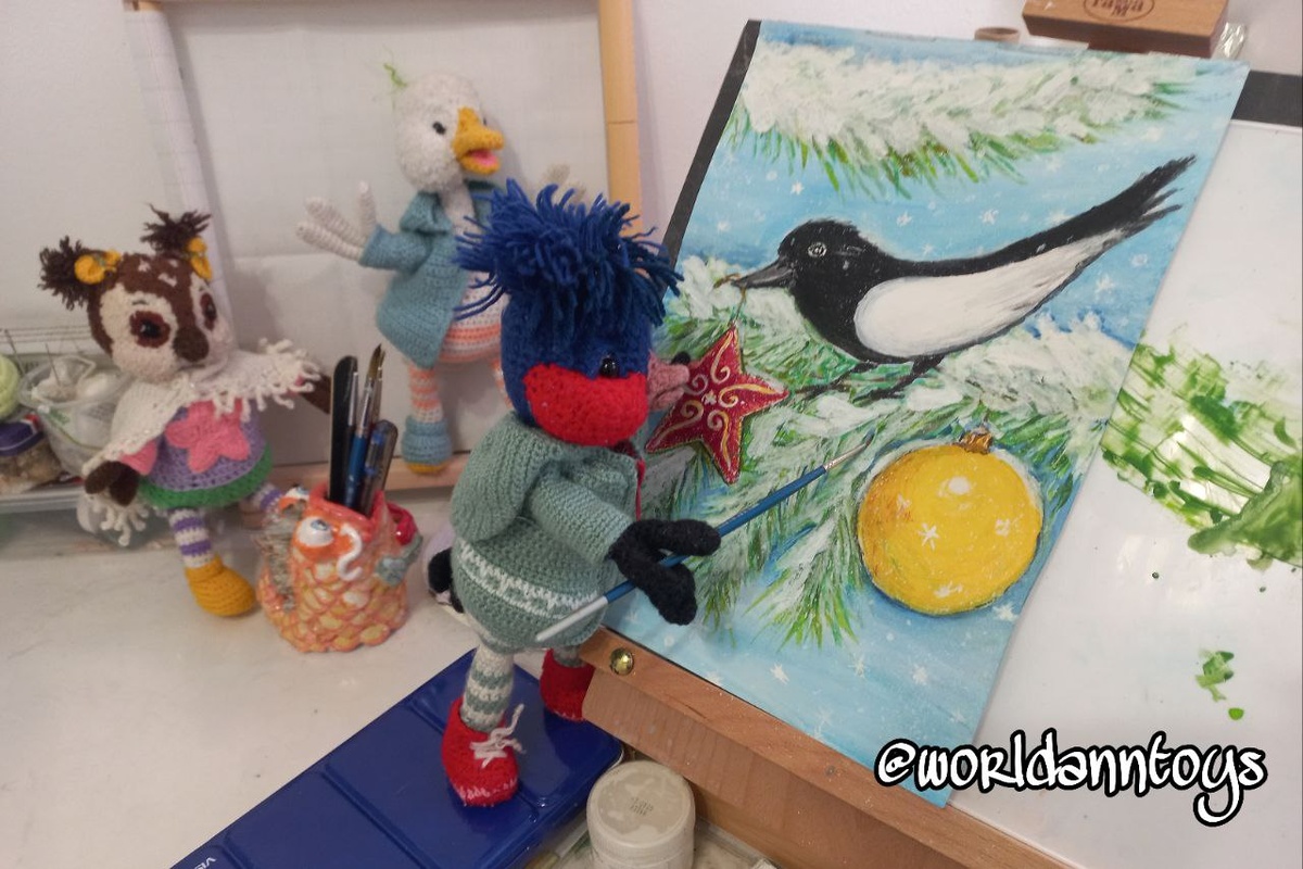 🎨#Акварелька Непоседа пёстрая, Птица длиннохвостая, Птица говорливая, Самая болтливая. Непоседа птица эта Одного с березой цвета. Верещунья-белобока А зовут ее СОРОКА #зима #акварель #рисунок #фото #архив #творчество Истории мира игрушек