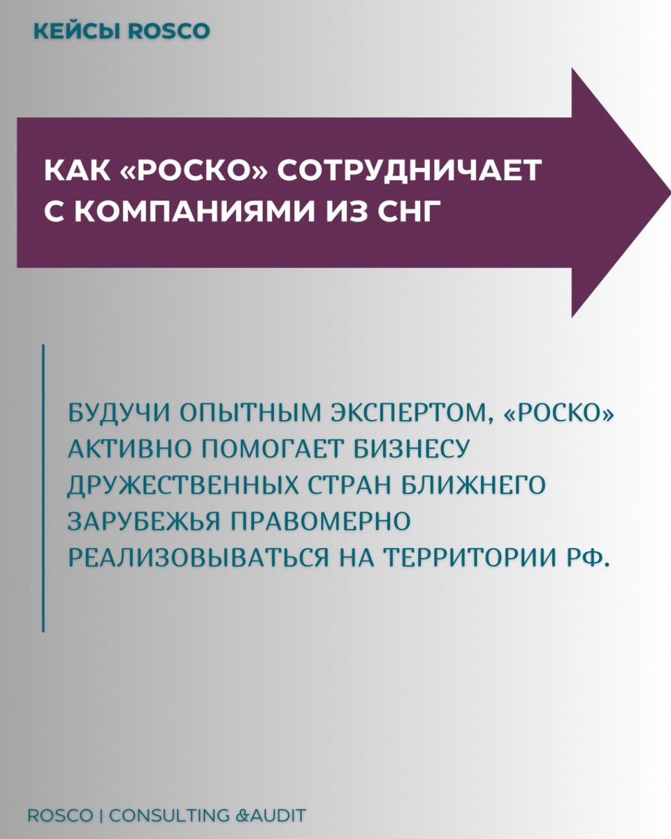 Будучи опытным экспертом, «РосКо» активно помогает бизнесу дружественных стран ближнего зарубежья правомерно реализовываться на территории РФ. ✅ Кейсы «РосКо»: 🔸Казахмыс — крупнейший производитель меди в Казахстане и по совместительству международная компания по добыче природных ресурсов обратилась за услугами в «РосКо». 🔸Прошянский коньячный завод — крупное армянское предприятие с поставками в Россию, Германию, США, Грецию, Израиль, Южную Корею и другие страны является давним клиентом «РосКо». 🔸MEDIKER — казахстанский лидер в частной, страховой и промышленной медицине заключил контракт с «РосКо» на оказание юридических услуг. 🔸ГК «Джахан» — выбрала «РосКо» для полного юридического сопровождения финансово-хозяйственной деятельности в России. 🔎 Опыт «РосКо» показывает: Для надежного фундамента бизнеса из стран СНГ хорошо иметь партнера в области права, который обеспечит поддержку организации, взяв на себя юридическую нагрузку на территории РФ. 💼 RosCo в Telegram и Max