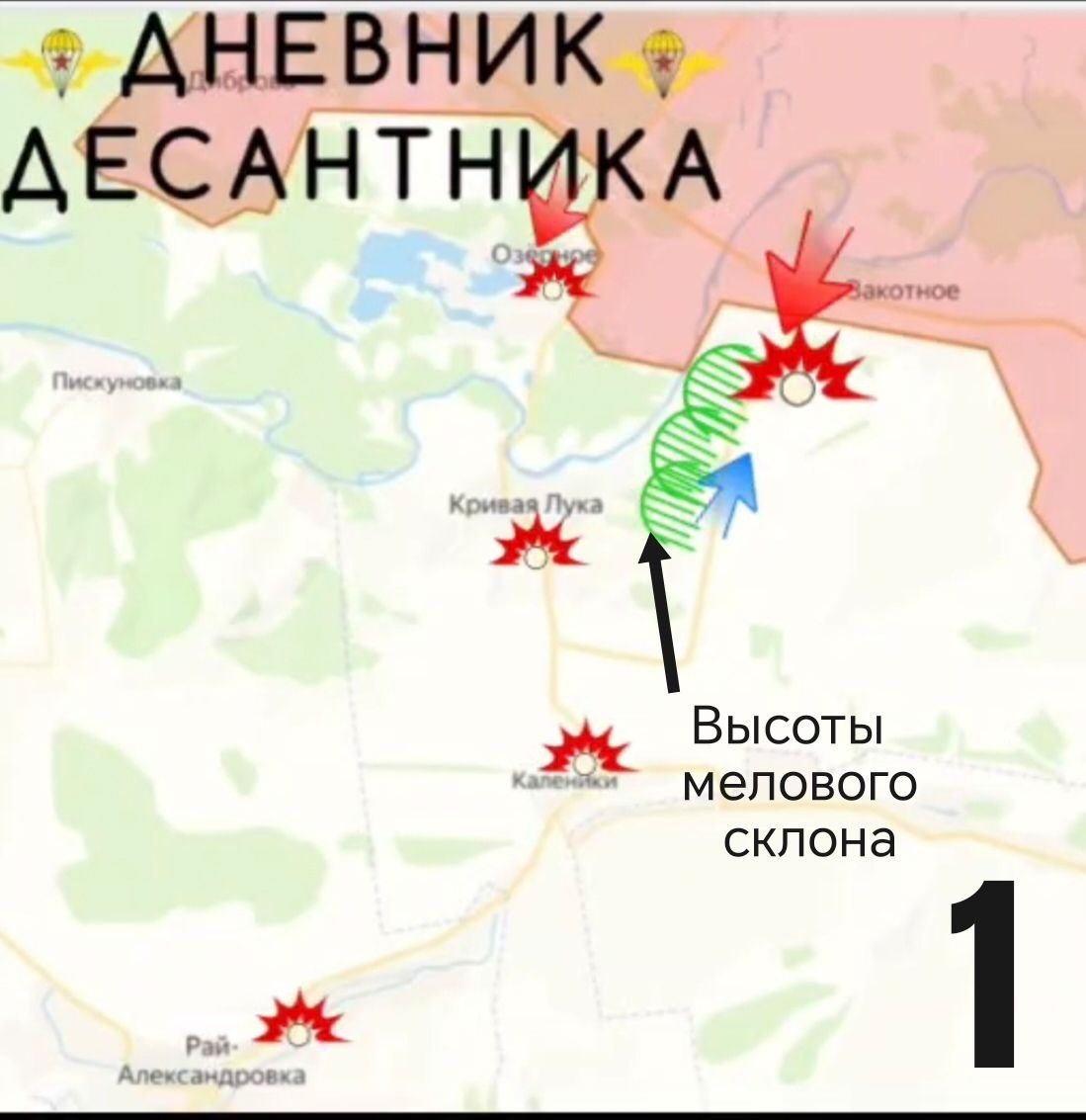 ). Докладывает Око. ⚡ Северский участок (1) После занятия опорника на господствующих высотах Закотного, у наших воинов появилось преимущество при зачистке "серой зоны" у южных окраин Ямполя. Противник постоянно предпринимает попытки отбить опорник, делая вылазки со стороны мелового карьера. Завязываются бои в западной части Закотного. Отражаем атаки, пытаясь прорваться к меловому склону расположенному вдоль реки Северский Донец. Ведем постоянную огневую обработку опорников и нор ВСУ. Работаем по позициям и логистике ВСУ в Калениках, Кривой Луке, а также в лесном массиве севернее Рай-Александровки. Продвинулись к южным окраинам Озерного. Южный участок (2) Наши штурмовики ведут бои за Резниковку, преодолевая упорное сопротивление противника. Враг продолжает предпринимать попытки контрнаступа на Кирово. (3) Севернее Пазено заняли новые позиции. От освобожденного Бондарного есть успехи в продвижении далее на запад. Закрываем "карман" между освобожденным селом Приволье и соседне