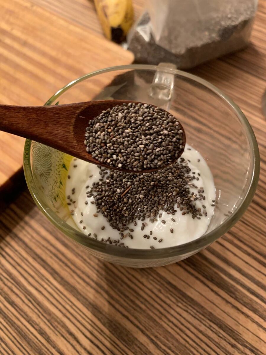 Если в течение дня не хватает белка из расчета на 1 кг веса 1 г белка, то на ужин размешиваю семена чиа с домашним йогуртом, который делаю