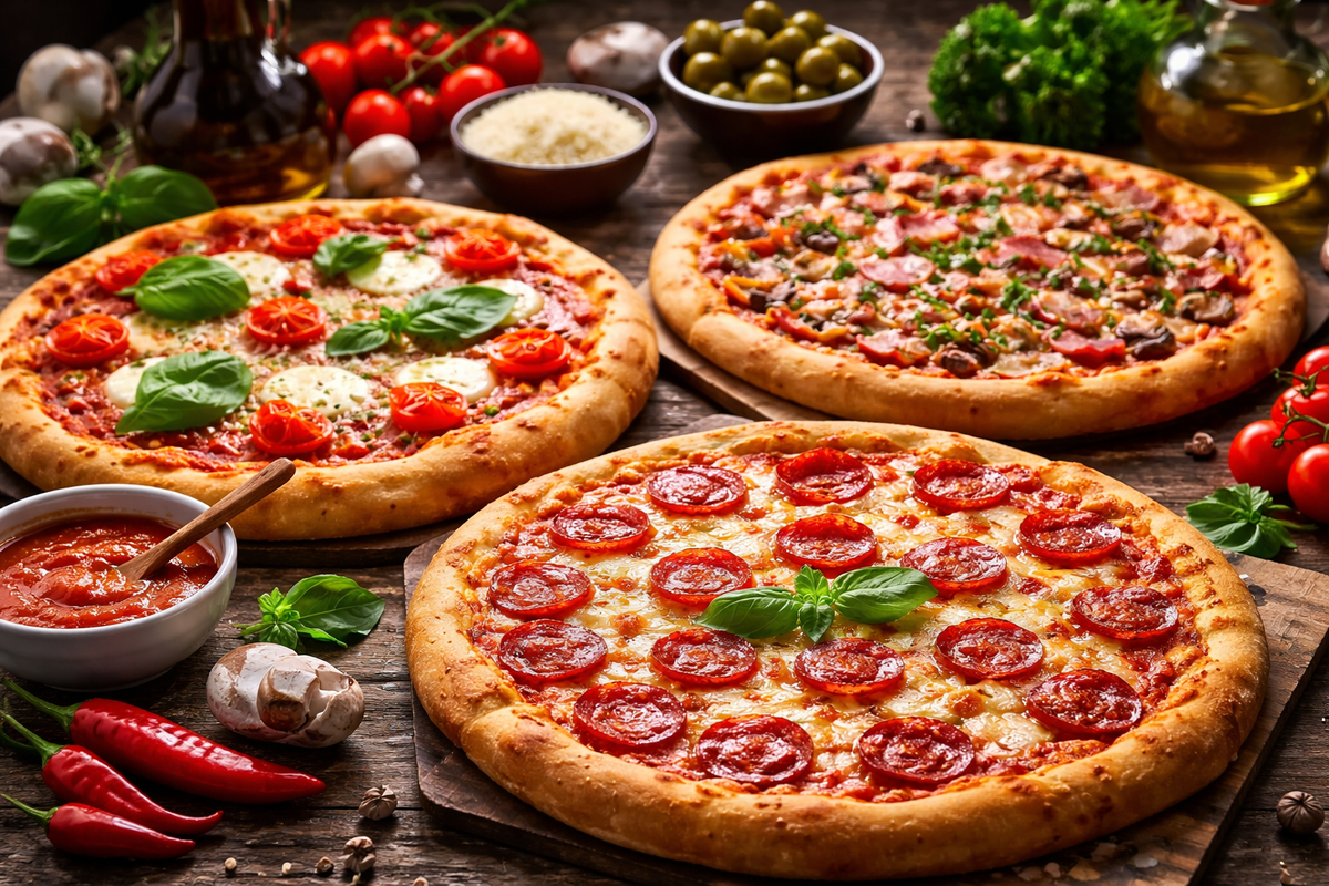 • Богатый выбор пицц с разными уровнями остроты и насыщенности