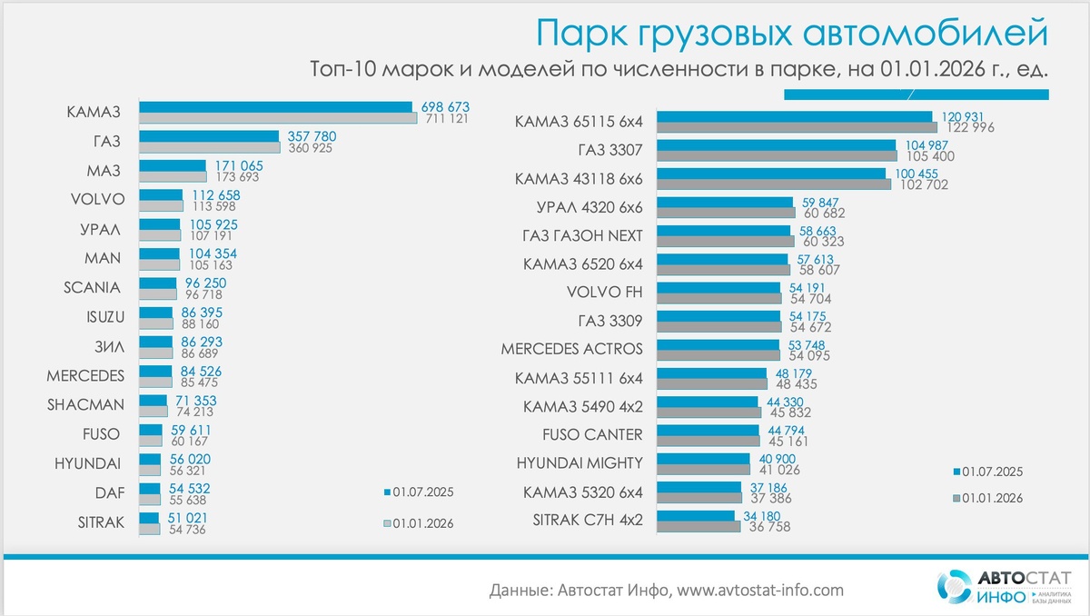 🚚Столько было зарегистрировано в России по состоянию на 1 января 2026 года.