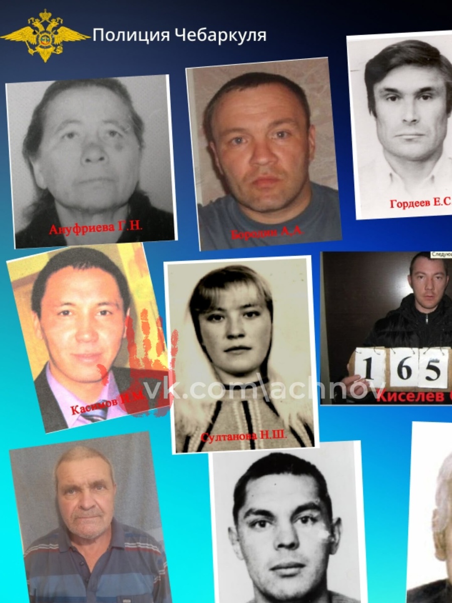 Эти люди пропали без вести! Южноуральцев просят о помощи в поиске пропавших жителей региона. Фотографии и личные данные предоставила полиция Чебаркуля. У "Агентства чрезвычайных новостей" есть список пропавших:👇 1. Галина Ануфриева, 1940 г.р.: на вид 65-70 лет, имеет проблемы со здоровьем, передвигаться может только с сопровождением. Особые приметы: бельмо, заболевание полиартрит, слабое зрение. 2. Андрей Бородин, 1975 г.р.: Примечательных особенностей внешности нет. 3. Виктор Бочкарев, 1954 г.р.: БОМЖ, рост 185-190 см, отсутствует большой палец на левой руке. 4. Евгений Гордеев, 1954 г.р.: рост 168 см, левый глаз поврежден, имеет незначительные шрамы и шишки на груди. 5. Евгения Гусева, 1985 г.р.: имеет татуировку на правом плече. 6. Ильдар Касимов, 1983 г.р.: левый глаз подвергался хирургическому вмешательству, множественные шрамы на руках и бедрах. 7. Сергей Киселев, 1980 г.р.: без отличительных признаков. 8. Владимир Колесников, 1951 г.р.: косолапый, носит зубной протез. 9. Петр М