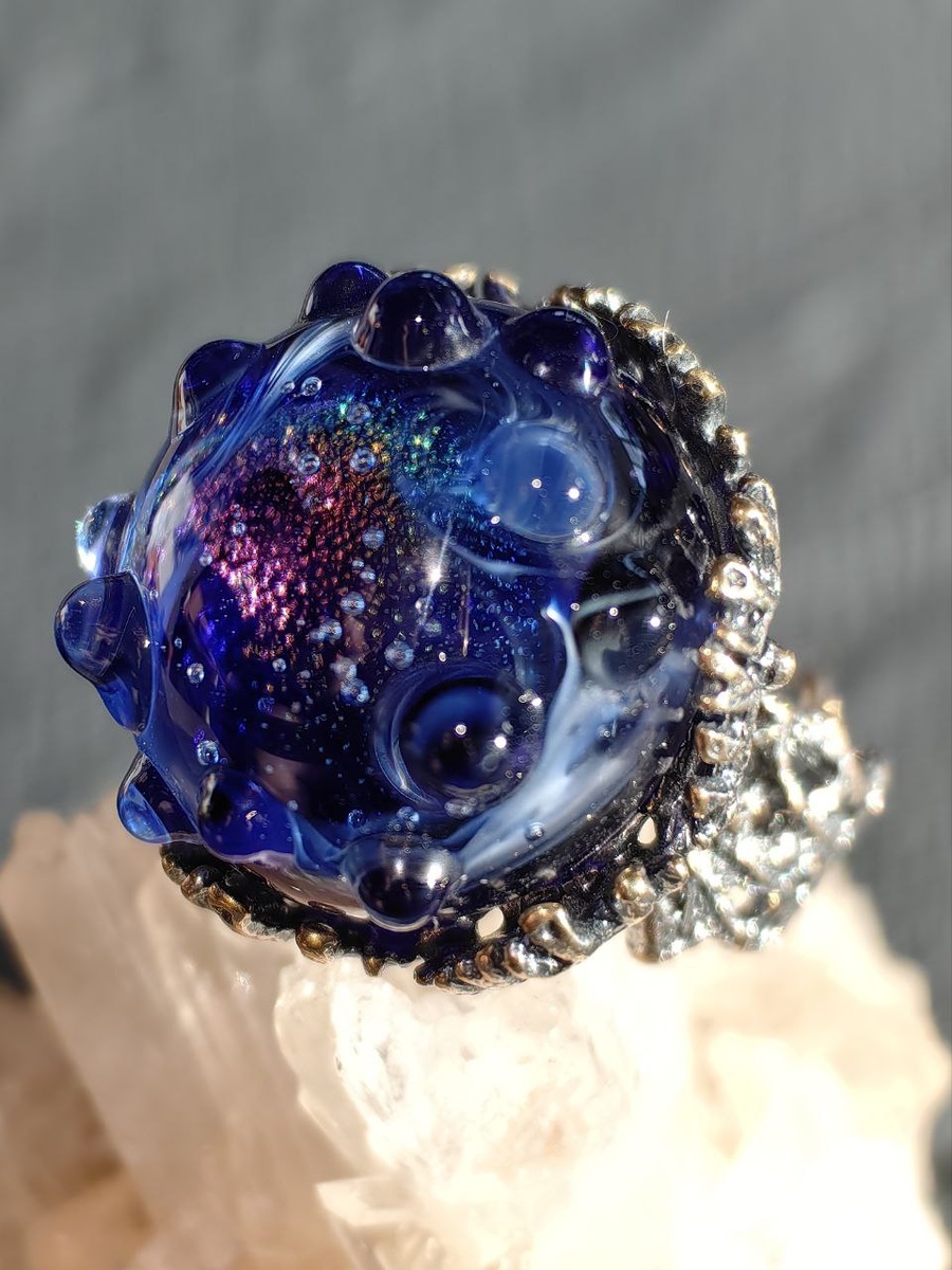 Есть погода — нет Северного сияния. Общаюсь с дочерью сейчас через кружочки в телеграме. Тонкие перистые облака с Кольского залива смотрятся сказочно. А вот пойманная в кадр мерцающая кисея почти не видна. Зато сразу вспоминается как давным-давно мы не могли оторвать глаз от отголосков зелёных сполохов на Урале. И в том, что живое, большое и танцующее — завораживает — нисколько не сомневаешься. #проМашиныбусины #лэмпворк #космосналадони #кольцо #кольцолэмпворк #кольцоручнойработы #celebrate_lampwork #annabronze