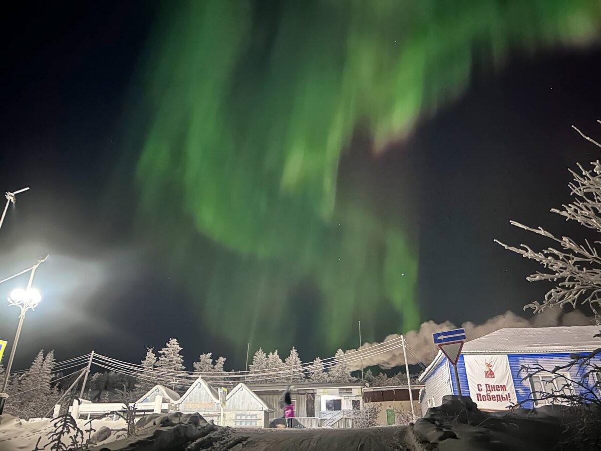 ✨ Солнечная плазма добралась до Земли! Специалисты сообщают, что в течении сегодняшней ночи сияние может стать ещё ярче. Чем дальше от источника света, тем лучше видимость. Делитесь своими фото и видео в комментариях! Фото: Ксения Варнавская, Семён Саввинов. 👻 Привидение в Мирном!