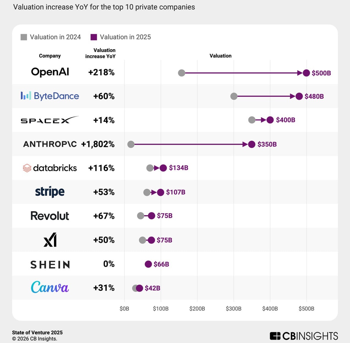 The valuations of the world's top 10 most valuable startups have changed, according to a new report.