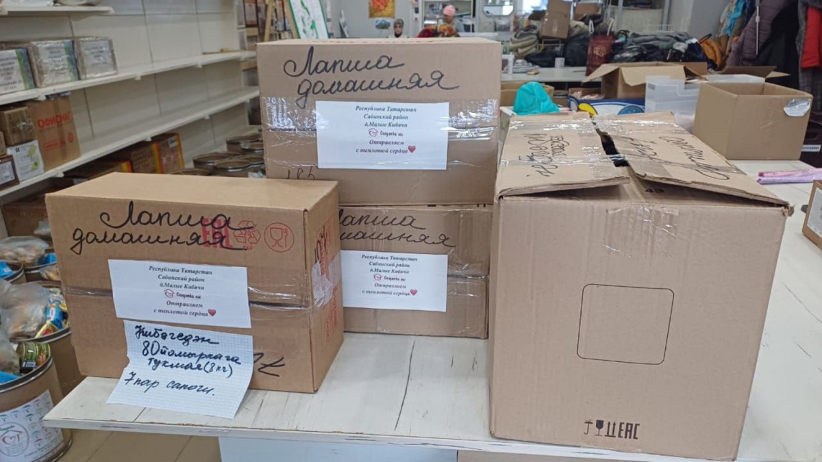 🔹Олы Кибәче авыл җирлеге волонтерлары даими рәвештә махсус хәрби операция зонасындагы егетләргә ярдәм оештырып торалар
