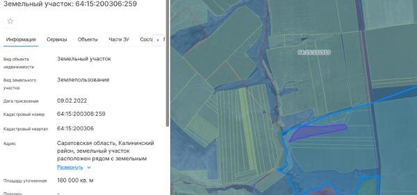 Название: Земельный участок с кадастровым номером с кадастровым номером 64:15:200306:259, площадью 180 000 (сто восемьдесят тысяч) кв.м