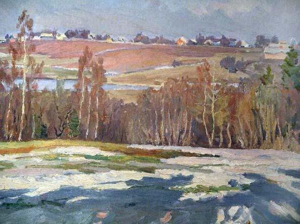 Название работы: Весна в деревне Иваново https://rilmark.ru/artworks/20140924:398-330-740 картон/масло 50см x 70см 1990 г. Приглашаем к просмотру других работ этого автора! Автор: Логунов Владимир Петрович, галерея работ: https://rilmark.ru/authors/19534