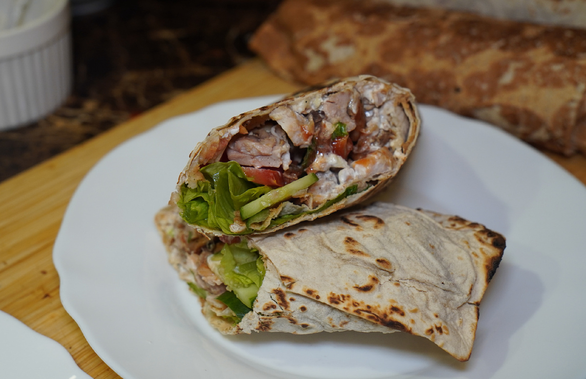 Домашняя шаурма! Мясо в лаваше! Простой и вкусный #рецепт Ингредиенты: ~1 кг куриных бедер без кости 2 помидора 1 огурец Листья салата Кетчуп 250 г. греческого йогурта 5-7 зубчиков чеснока Специи: соль, черный перец, копченая парика Приготовление: 1. Маринуем бедра, для этого добавляем к ним растительное масло, соль, черный перец, копченую паприку и перемешиваем, оставляем мариноваться пока нарезаем овощи; 2. Нарезаем помидоры и огурец; 3. Для соуса в греческий йогурт добавляем соль, черный перец и давленный чеснок, перемешиваем и оставляем настаиваться; 4. Хорошенько обжариваем бедра(на сковороду отправляем растительно масло и выкладываем бедра кожей вниз на холодную сковороду и жарим); 5. Нарезаем мясо на кубики и затем начинаем собирать шаурму как на видео, как скрутили отправляем на горячую сковороду и запечатываем! И ВСЕ! Шаурма ГОТОВА! Приятного аппетита, мои друзья! подписывайтесь на канал, здесь будет еще много вкусных рецептов! #шаурма #домашняяшаурма #шаверма #шаурмарецепт #ш