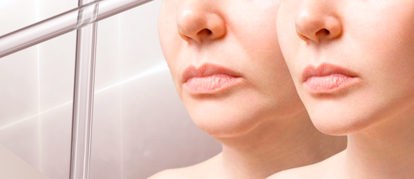 Эти изменения приводят к западению скуловой и височных зон, а значит к появлению впалых щек и углублению носогубных складок, брылей и потере четкости овала лица. При этом утяжеляется нижняя часть лица. Второй подбородок и брыли заметно видоизменяют эту часть лица, в результате чего теряется характерный для молодого возраста V-образный овал.