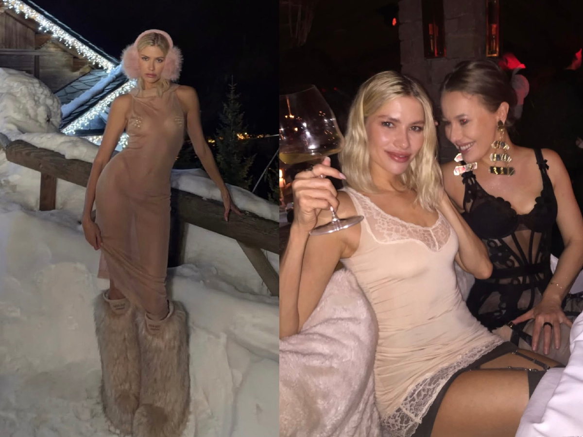 Сегодня разбираем самые откровенные и эффектные образы Лены Перминовой, которые она продемонстрировала в Куршевеле. Российская икона стиля приехала на курорт по приглашению одного из отечественных брендов обуви, чтобы принять участие в званых ужинах и гламурных вечеринках, куда были приглашены также Ксения Собчак, Александр Рогов, Оксана Самойлова и другие российские звёзды. На фоне сияющей тусовки Лена впечатлила своей смелостью в одежде. Один из самых обсуждаемых образов: меховой бра и тёплая шуба и массивные меховые сапоги. Этот образ идеально подчеркнул её фигуру и умение играть с текстурами. Ещё один яркий выход на ужин: мини платье с кружевом и чулки, где за тепло отвечали только чулки. Очень неуместный образ на званном ужине. Самый смелый и обсуждаемый наряд: полностью прозрачное нежно-розовое платье, меховые сапоги и наушники с мехом. Елена отдыхала со своим возлюбленным Тарасом и демонстрировала максимальную откровенность, не боясь быть в центре внимания. А как вам образы Ле