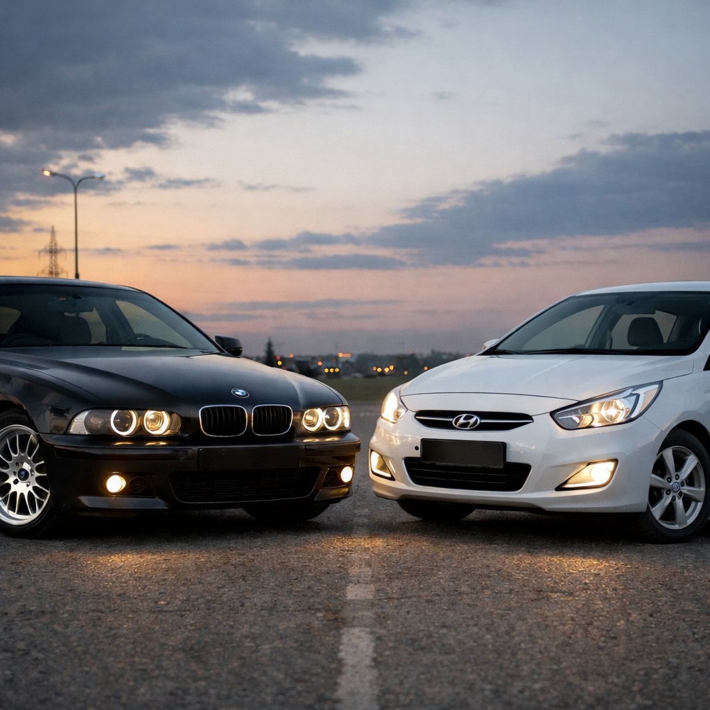 Привет, автолюбители! 👋 Выбираете машину до миллиона рублей и стоите на распутье: легендарная "пятёрка" BMW E39 или практичный кореец Hyundai Solaris? Как автоэксперт с 10+ годами опыта, я знаю: выбор авто — это не только техника, но и эмоции, бюджет на обслуживание и стиль жизни. Разберём оба варианта по полочкам: плюсы, минусы, реальные цены и советы от профи. Поехали! 🚗💨 Это не просто машина — это икона 90-х! "Бэха" с рядной "шестёркой" M52/M54 (2.0–2.8 л, 150–193 л.с.) дарит кайф от вождения, который современные конвейеры не воспроизведут. За 1 млн руб. найдёте живой экземпляр 1999–2003 г.в. в хорошем кузове. Что круто: