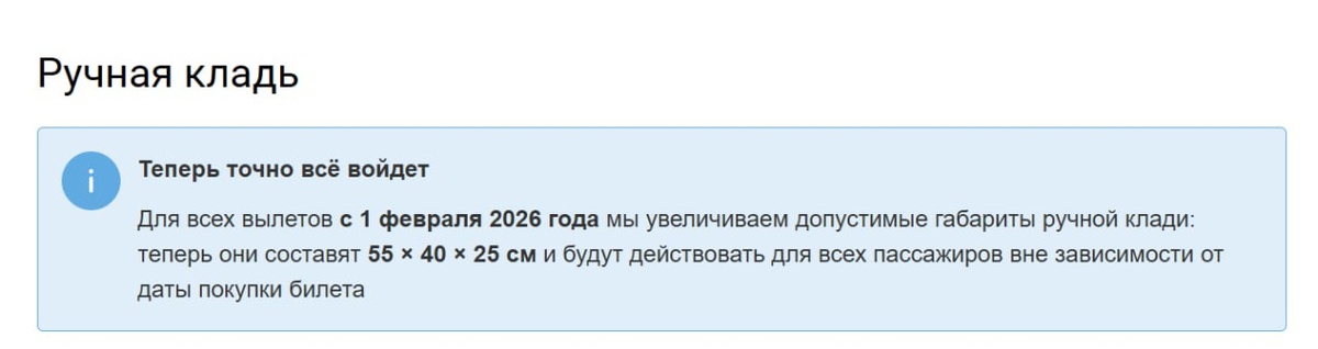 Теперь можно проносить на борт чемоданы не 55×40×20, а 55×40×25 см. Новые правила начнут действовать с 1 февраля и будут распространяться на всех пассажиров (не имеет значения, когда именно вы купили билет и из какого города вылет). По весу всё так же: до 10кг в эконом-классе и до 15кг в бизнесе. Самые приятные пять сантиметров в жизни. 🔥Подписаться на Купибилет