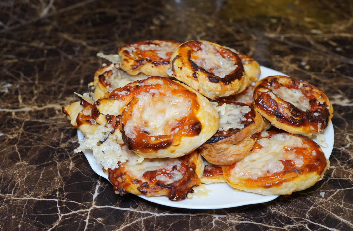 Мини пицца из столовой! Простой и вкусный #рецепт Ингредиенты: 500 г. слоеного теста 200 г. тертого сыра 300-400 г. докторской колбасы 1 маленький лук Майонез Кетчуп Приготовление: 1. Докторскую колбасу натираем на терке, лук мелко измельчаем; 2. Слоеное тесто раскатываем в один слой и выкладываем по всей поверхности лук, тертую колбасу и тертый сыр, сворачиваем в рулет, разрезаем на куски по 3 см и придавливаем как на видео, сверху обмазываем кечунезом (кетчуп и майонез смешанные в пропорции 1 к 1); 3. Выпекаем в разогретой до 180°C духовке 20-25 минут, затем достаем из духовки посыпаем сыром и отправляем в духовку еще на 5 минут. И ВСЁ! Наша мини пицца готова! Приятного аппетита, мои друзья! подписывайтесь на канал, здесь будет еще много вкусных рецептов! #минипицца #пицца #быстраяпицца #пиццарецепт #рецепт #пиццаизслоеноготеста #еда #чтоприготовить #выпечка #слоеноетесто #пиццавдуховке #домашняяпицца #изслоеноготеста #рецепты #рецептпиццы #какприготовить #минипиццавдуховке #какприго