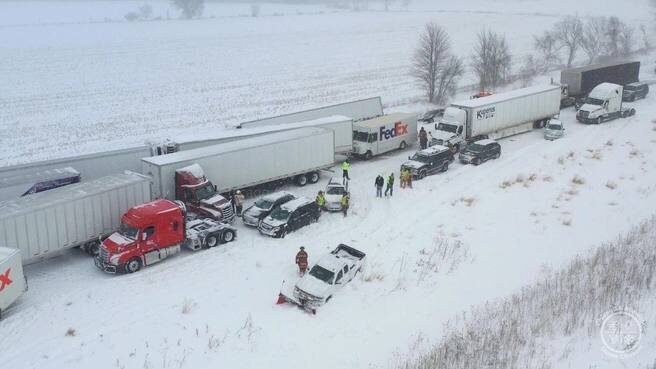 🚘По предварительным данным, десятки людей получили травмы. ❄️Авария случилась после сильного снегопада: дорогу занесло, видимость была почти нулевая. В результате на трассе образовалась многокилометровая пробка, движение полностью перекрыто. 🚨На месте работают спасатели, сотрудники дорожных служб и полиция. 📸: HorsesRGreat #НеОмскаяистория