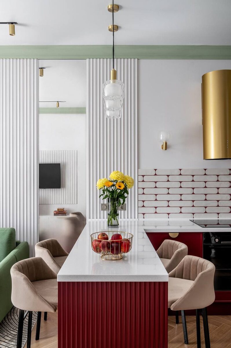 ? Этот интерьер — пример того, как фактура работает наравне с цветом и мебелью. Кухня-гостиная получилась цельной, но многослойной: спокойная база, выразительные акценты и продуманная геометрия. Стеновая панель WX211 становится ключевым фоном пространства. Её вертикальная установка подчёркивает высоту помещения и добавляет интерьеру структурированной элегантности. Ритм тонких рельефных линий создаёт игру света и тени — стены не выглядят плоскими, они «живут» в течение дня. Сохраняйте проект в закладки для вдохновения 🤍 Дизайнер: Анастасия Володина #гостиная