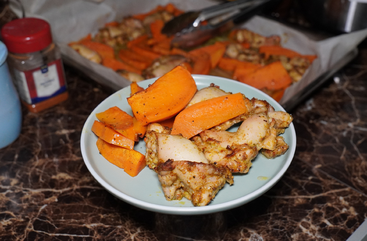 Запекаю батат и куриные бедра в духовке! Простой и вкусный #рецепт Ингредиенты: 800 г. куриное филе бедра 800 г. батат Растительное масло Специи: соль, черный перец, копченая паприка, приправа универсальная (корень пастернака сушёный, лук репчатый сушёный, морковь столовая сушеная, зелень петрушки сушёная, зелень укропа сушеная, семя горчицы, чеснок сушёный, куркума молотая, перец душистый молотый, перец чёрный молотый) Приготовление: 1. Для начала чистим батат от кожуры и нарезаем на дольки, добавляем соль, черный перец и растительное масло, перемешиваем и отправляем на противень; 2. В мясо добавляем соль, копченую паприку, универсальную специю и растительное масло, перемешиваем и оставляем мариноваться 10-15 минут, затем выкладываем мясо к батату и отправляем в разогретую до 180°С духовку на 35-40 минут(35 минут режим верх+низ и в конце 5 минут режим обдув). И ВСЕ! Батат и куриные бедра готовы! Приятного аппетита, мои друзья! подписывайтесь на канал, здесь будет еще много вкусных рец