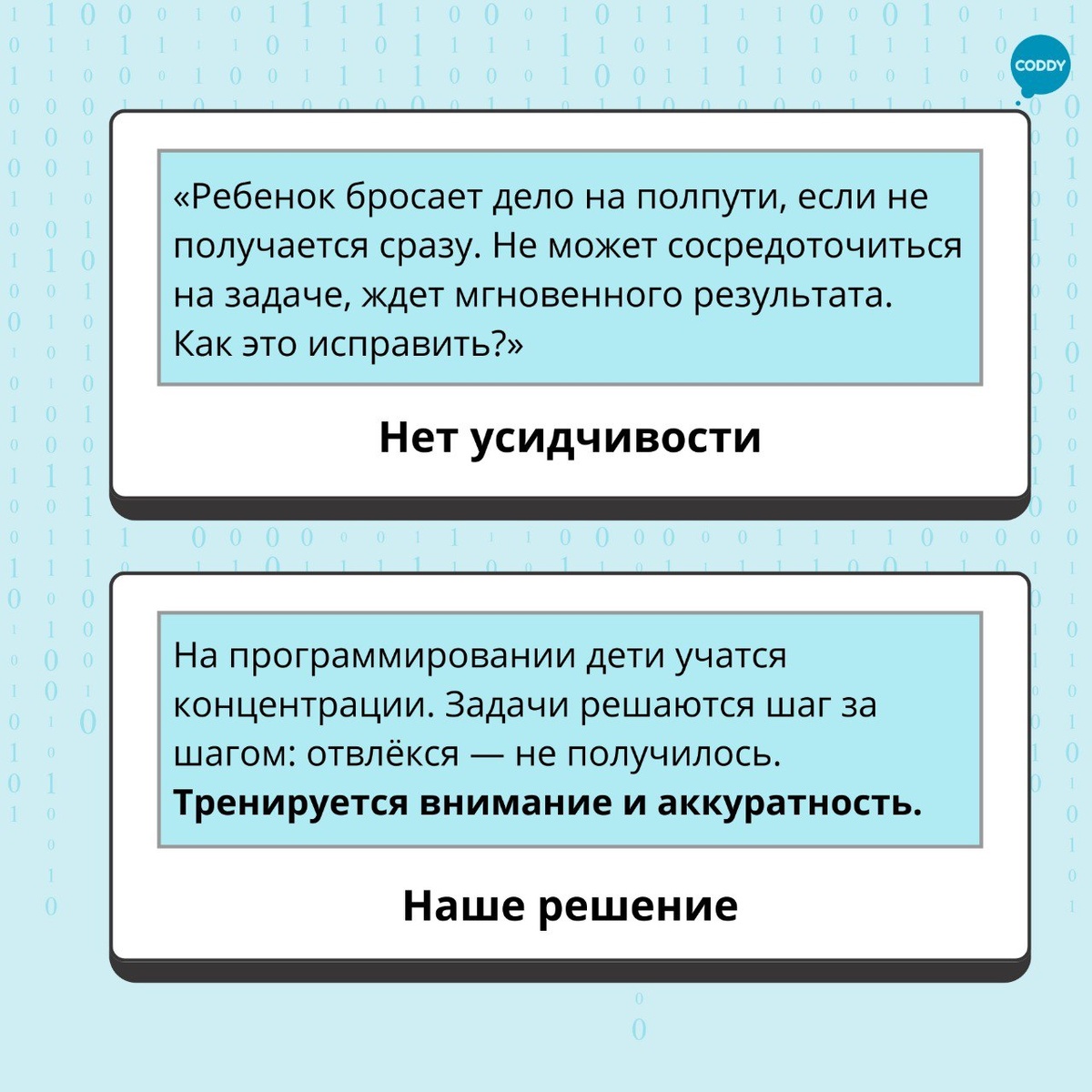 ? Заглядываете в комнату и видите одну и ту же картину: сутулая спина, стеклянный взгляд, прикованный к экрану, и полное отсутствие реакции на внешний мир. Хотите обнять ребенка или спросить, как прошел день, но видите только светящийся экран и затылок. В этот момент внутри порой поднимается целая буря: от бессилия до страха за будущее. «Почему он ничего не хочет?», «Как он будет общаться с людьми?», «Почему не может на уроках сосредоточиться?», «Как развивать навыки коммуникации в таких условиях, они ведь мало общаются?» Мы знаем и понимаем эти чувства. В галерее к этому посту мы собрали 6 типичных ситуаций, с которыми к нам приходят родители. И заявляем: «Программирование — это способ преодолеть ряд трудностей» Мы видели это десятки раз: ✅как «трудный» подросток вдруг увлекается, потому что у него получилось сделать игру. ✅как застенчивый мальчик начинает с гордостью рассказывать о своем проекте. ✅как девочка, считавшая себя «гуманитарием», вдруг понимает логику сложных процес