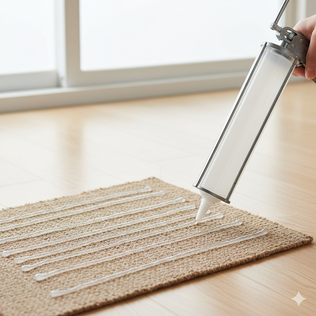 Что нужно сделать: Почему это работает: Застывший силикон создает прорезиненную поверхность с очень высоким сцеплением. Когда вы наступаете на коврик, эти «точки» плотно прижимаются к полу и не дают ткани сдвинуться ни на сантиметр. При этом силикон не приклеивает ковер к полу намертво — его всё так же легко поднять для уборки. Лайфхак: Этот метод отлично работает и для носков! Если нанести несколько силиконовых точек на подошву детских или домашних шерстяных носков, они превратятся в безопасные «нескользяшки».