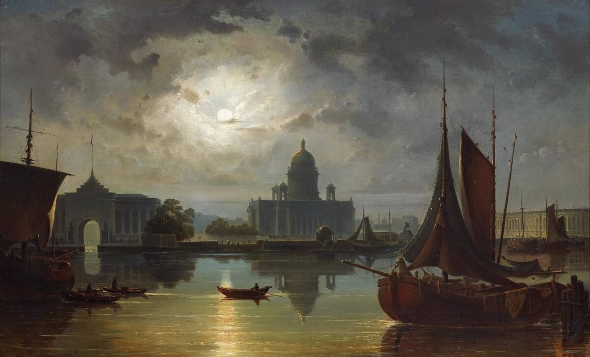 Давайте отвлечемся, на: "Санкт-Петербург в лунном свете", 1871 Художник / Йозеф Андреас Вайс (1814-1887) Если бы я делал следующую часть АС, то действие проходило бы именно здесь.