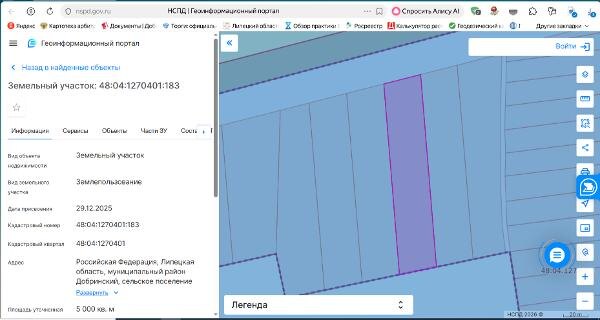 Название: Земельный участок с кадастровым номером 48:04:1270401:183 площадь 5000 по адресу Российская Федерация, Липецкая область