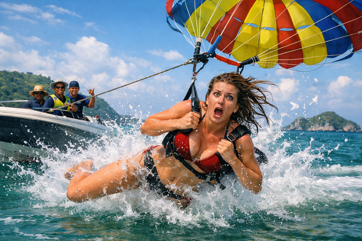 Судьба порой подбрасывает сюжеты, достойные пера великих юмористов, в самых неожиданных местах. Чаще всего на отдыхе, где человек, оторвавшись от родных пенатов и привычных правил, внезапно обнаруживает себя участником фарса, режиссёром которого выступает местный колорит, а билетёром — собственная наивность. Зоя, дама с волей и любовью к острым ощущениям, решила обогатить свой курортный опыт на острове Пхукет. Ей предложили полёт на параплане с загадочной опцией «погружение». Логика Зои, отточенная в московских пробках, подсказала ей: плавный полёт, затем мастерское приводнение в тёплую лазурь, подобно птице, решившей искупаться. Разве не чудо? Её выбор вызвал среди улыбчивых тайских аборигенов лёгкий ажиотаж. Они переглядывались, кивая головами с особым, почти благоговейным уважением, и шептали друг другу: «Леди рашен мафия». Зоя приняла это за комплимент храбрости, расправила плечи и гордо заняла свое место на пирсе. Катер рванул с места. Пирс уплыл из-под ног. Зоя взмыла в небо, ощ