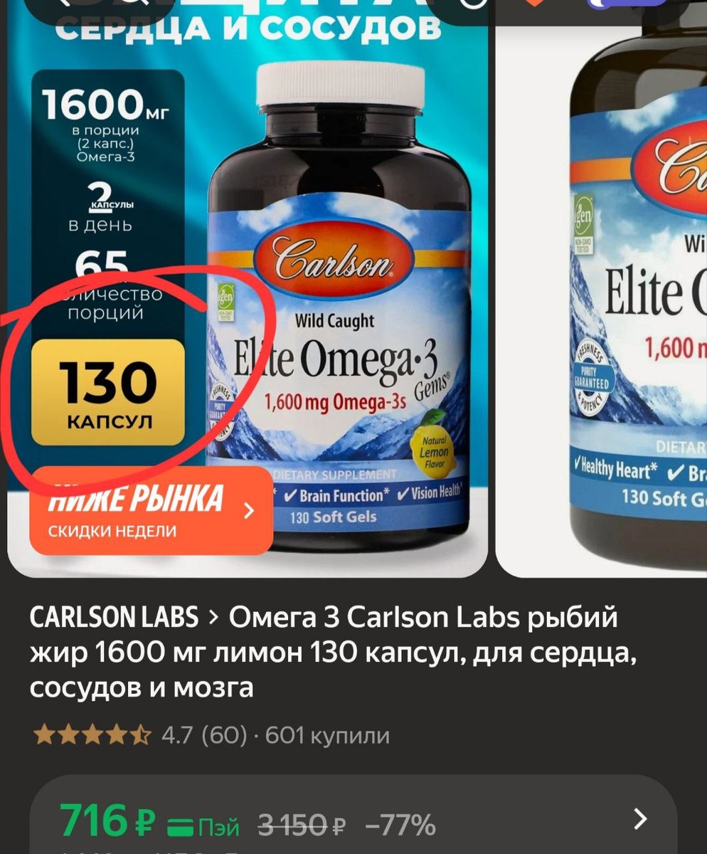 π»ΠΠΌΠ΅Π³Π° 3 Carlson Labs ΡΡΠ±ΠΈΠΉ ΠΆΠΈΡ 1600 ΠΌΠ³ Π»ΠΈΠΌΠΎΠ½ 130 ΠΊΠ°ΠΏΡΡΠ», Π΄Π»Ρ ΡΠ΅ΡΠ΄ΡΠ°, ΡΠΎΡΡΠ΄ΠΎΠ² ΠΈ ΠΌΠΎΠ·Π³Π° - 716Ρ (Ρ.ΠΏΡΠΉ