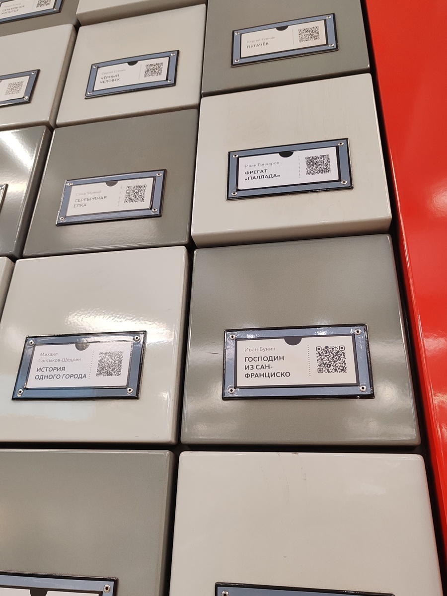 Библиотека самая что есть НАСТОЯЩАЯ 🙄, а не просто декор и стилизация. По кьюар-кодам на колоннах, оформленных как библиотечная картотека, можно скачать соответствующие книги. Помните? Московское метро самое читающее в мире.