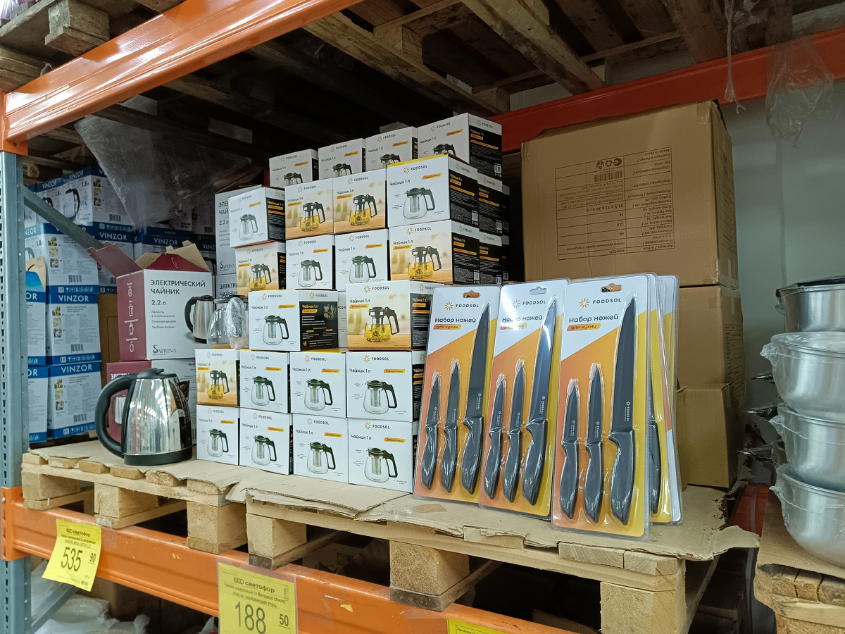 Из-за холода и гололёда в "Светофоре" сегодня почти нет покупателей. Я зашла в магазин и была удивлена количеством товаров в отделах, но людей было очень мало — не более десяти человек, и на такой площади их почти не было заметно. И в этом обзоре, делюсь с вами увиденным в "Светофоре" города Крымск. Пищевые пакеты предназначены для хранения и фасовки продуктов, в упаковке 500 штук размером 24х30 см. Идеальный вариант для заморозки ягод, зелени, мяса, рыбы и грибов. Подходят для фасовки сыпучих, мелких, пищевых продуктов, круп. Рулон для замороженных продуктов разделён качественной перфорацией, который не повреждает основной и соседний пакетик в момент отрыва. Цена 138 рублей. Набор керамической посуды из 12 предметов на четыре персоны. В комплекте 4 кружки объёмом 350 мл, 4 салатника объёмом 750 мл и 4 тарелки диаметром 19 см. Подойдет для ежедневного использования и сервировки праздничного стола. Набор упакован в прочную коробку, что обеспечивает удобство хранения и транспортировки. Ц
