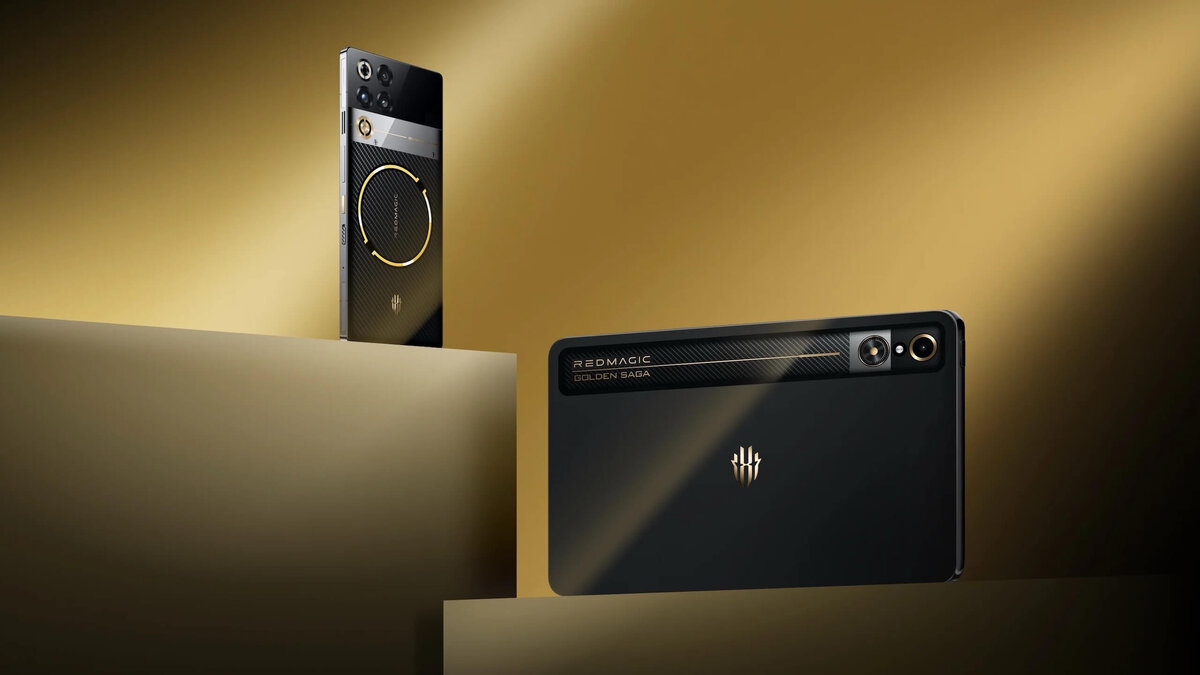 Red Magic анонсировала на глобальном рынке смартфон Red Magic 11 Pro Golden Saga Edition и планшет Red Magic Astra Golden Saga. Устройства сочетают эффектный дизайн с золотыми акцентами и производительность флагманского уровня. Red Magic 11 Pro Golden Saga Edition выделяется корпусом из углеродного волокна и богатыми золотыми акцентами, которые придают ему неповторимый вид по сравнению с обычным Red Magic 11 Pro (в Китае – Red Magic 11 Pro+). В устройстве используется углеродное волокно аэрокосмического класса, что делает его прочным и лёгким. Задняя панель выполнена из сапфирового стекла, обеспечивающего повышенную устойчивость к царапинам (выдерживает нагрузку до 9 баллов по шкале Мооса). Охлаждающая система оснащена золотыми и серебряными элементами – испарительная камера покрыта золотом, а внутренние трубки жидкостной системы имеют серебряное напыление. Именно это дало название новой технологии – Golden AquaCore. Спецификация устройства, включая процессор, оперативную память (24 ГБ