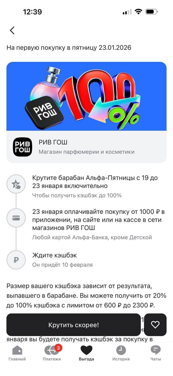 Крутите колесо в Альфа банк ( Альфа - Пятница) ❗️ кэш в РИВ ГОШ до 100
