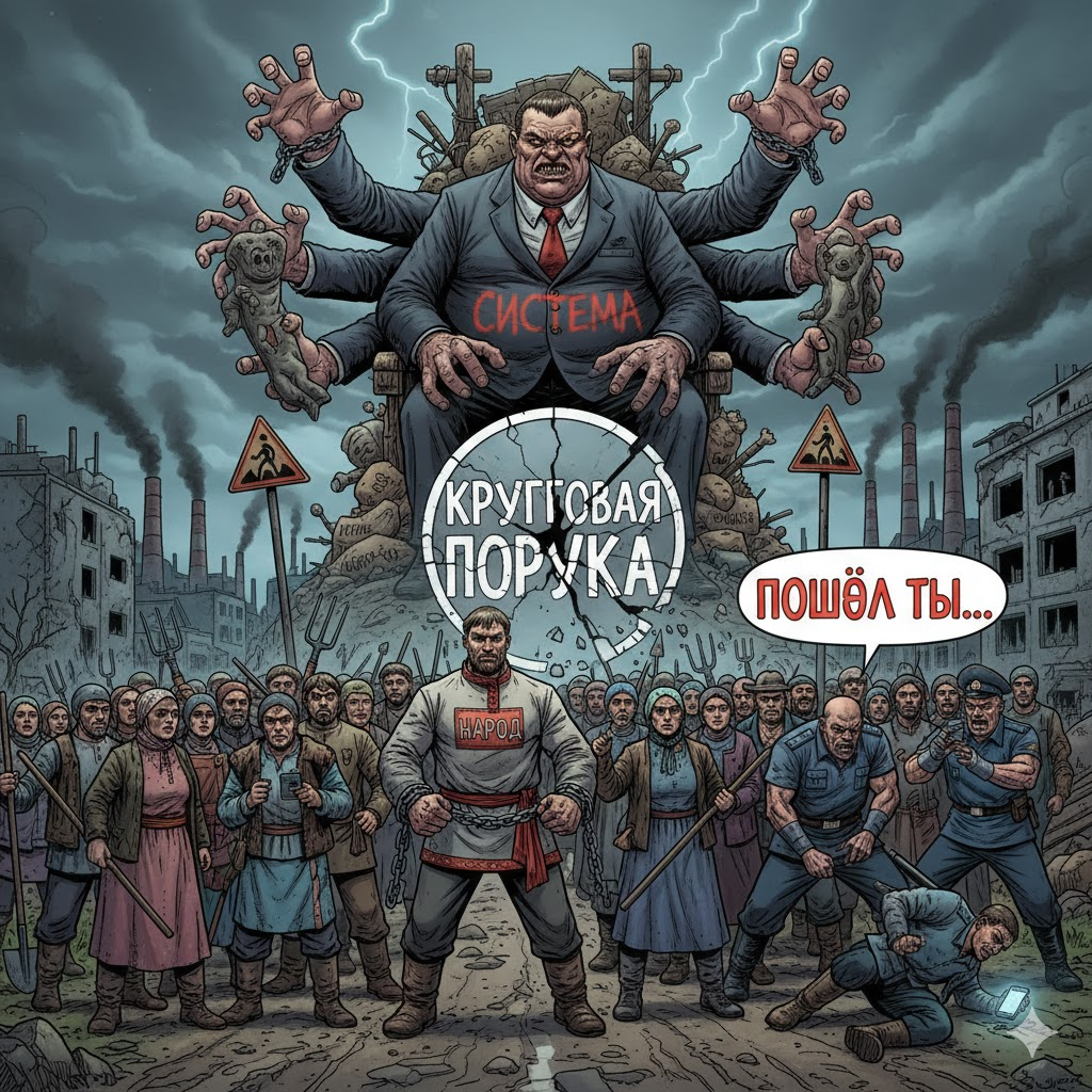 - 🌀 Круговая порука как религия: Посмотрите на президиум любого районного собрания. Там сидят: глава администрации, начальник районного ОВД, прокурор и председатель суда. В субботу они вместе на охоте, в воскресенье — в бане, а в понедельник они «вершат правосудие». Если вы решите пожаловаться прокурору на то, что полиция избила вашего соседа, знайте: прокурор уже через пять минут позвонит начальнику полиции и скажет: «Слушай, там на твоего опера кляузу принесли, разберись по-свойски». И к вам «разбираться» придут уже вечером.