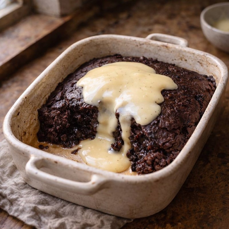(супер-подробно: не сухой, не резиновый, соус гладкий и не «яичный») Очень простой, но эффектный десерт: шоколадная основа + соус как «гарнир». Можно подавать тёплым или холодным — текстура будет разной, и это плюс. ⸻ 📌 ОБЩИЕ ПАРАМЕТРЫ Сложность: легко Порций: 4 Время: ~35 минут Форма: небольшая (20–22 см) или порционные формы 👉 маленькая форма = выше слой = сочнее ❌ большая форма = тонко и сухо ⸻ 🧾 ИНГРЕДИЕНТЫ (С ПОЯСНЕНИЯМИ) Шоколадная основа • Тёмный шоколад — 120 г 👉 60–70% какао ❌ молочный — будет приторно и мягко по вкусу • Сливочное масло — 100 г 👉 даёт влажность и «тающую» текстуру • Яйца — 2 шт., комнатной температуры 👉 холодные яйца хуже соединяются с шоколадом • Сахар — 80 г 👉 можно уменьшить до 60 г, если не любишь сладкое • Мука — 50 г 👉 немного, это не кекс ❌ больше — будет сухо • Какао — 1 ст. л. (по желанию, но усиливает вкус) • Соль — щепотка 👉 подчёркивает шоколад ⸻ Ванильный соус • Сливки 20% — 200 мл 👉 молоко даст слишком жидко • Желток