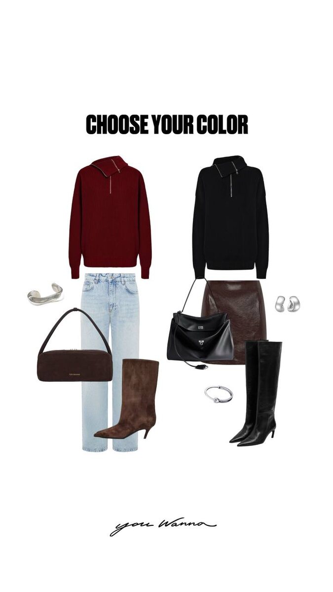 Джемпера с функциональными молниями в черном оттенке и оттенке бордо.