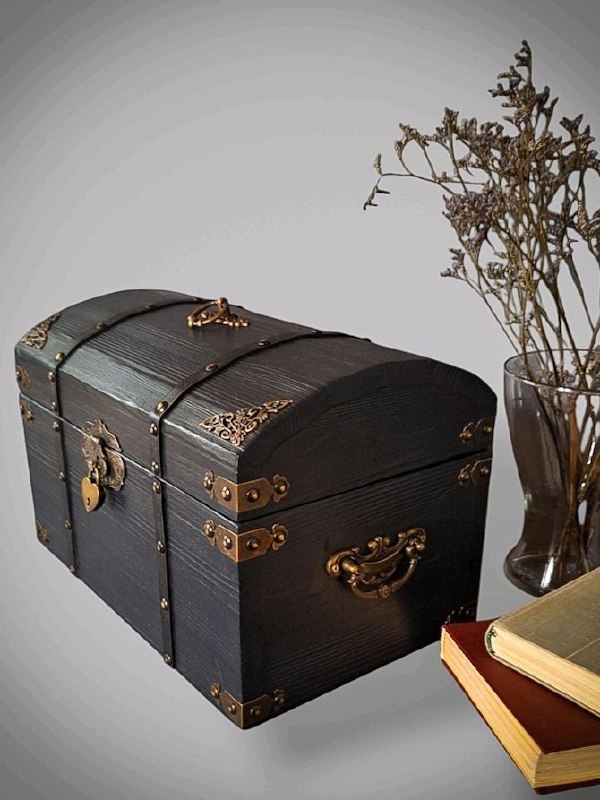 ». — Альберт Эйнштейн. ✨🗝 🖤 Сундук Нуар Готика чёрный круглая крышка стильный подарок 🖤 Этот сундук — настоящая находка для тех, кто ценит стиль и функциональность. Он выполнен из дерева, покрыт акриловой краской и мебельным воском, декорирован изящной черной оплеткой из натуральной кожи и фурнитурой цвета антик, придающей сундуку изысканный вид. Размер 37.5х22.5х21 см делает его емким и удобным для использования, а сбалансированные пропорции будут радовать глаз своей гармоничностью. Рельеф дерева подчеркнут брашировкой и покрыт шелковистым воском, к нему так и тянет прикоснуться! Такой сундук станет шикарным акцентом в монохромном интерьере стиля Нуар или Готика. Сундук в наличии. Если хотите сделать этот великолепный сундук частью вашего пространства, не откладывайте. Он такой один)) *Замочек на фото как идея, не входит в стоимость.. Цена: 20000р. Мастерская Nadin Sunduk - Оригинальные авторские Сундуки ручной работы. https://handmade-ok.ru/nadin-sunduk Спасибо за лайк! 👍